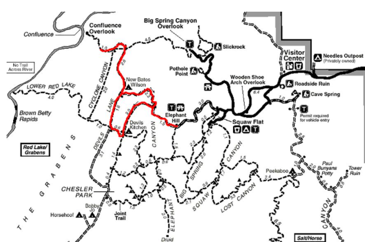 Roads requiring 4WD include: Elephant Hill, Salt Creek, Horse Creek, Davis Canyon, Lavender Canyon, Colorado Overlook, and the White Rim.