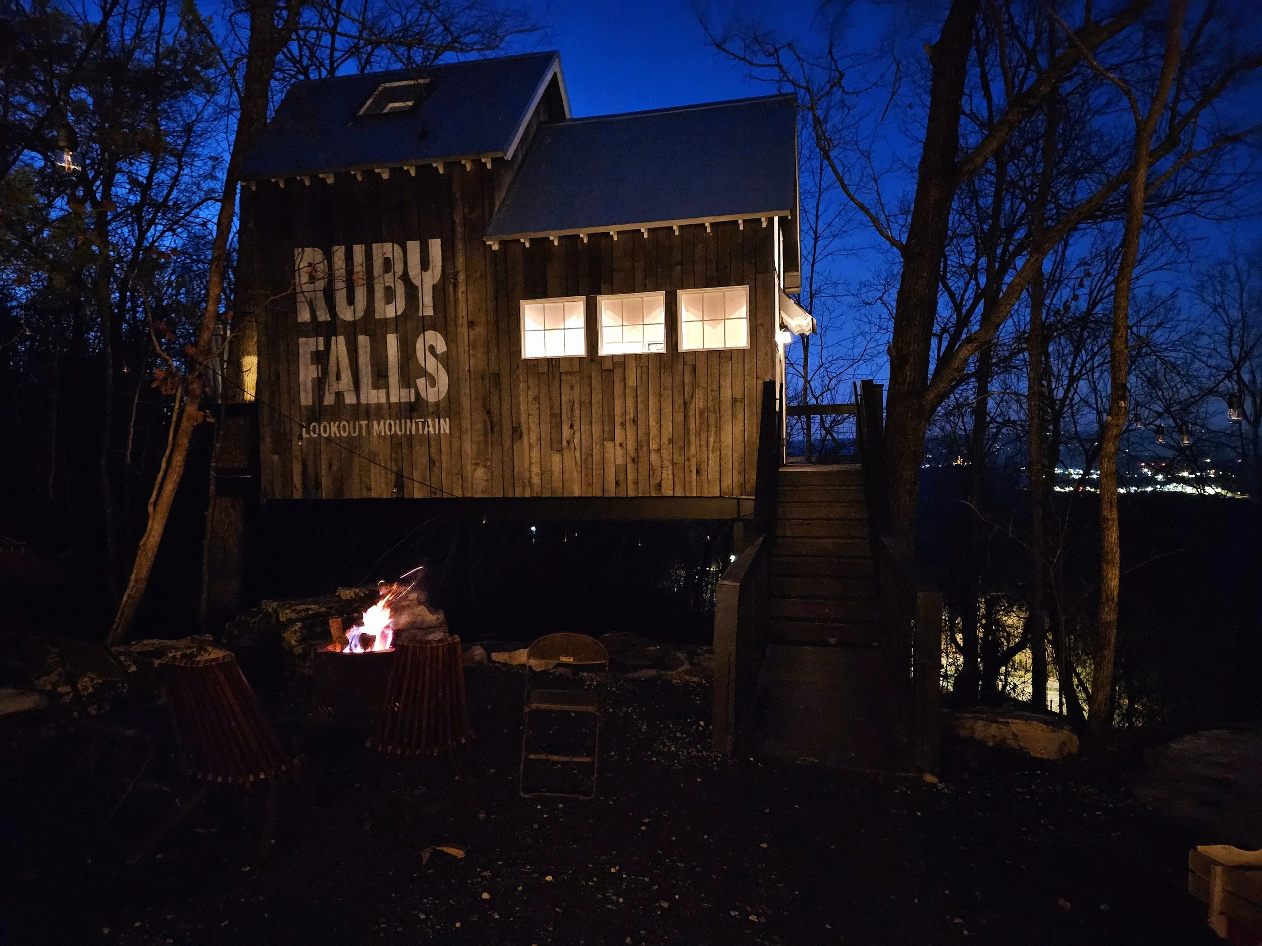 Each treehouse has a hammock built for two as well as a private firepit so you can spend romantic evenings cozying up to a fire under a canopy of stars as you take in the city lights and views of the Tennessee River below.